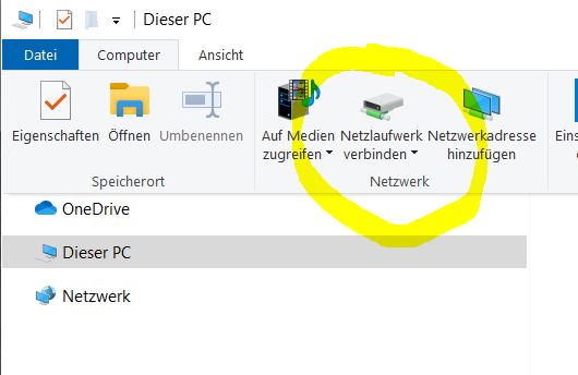 Wusstet Ihr, dass der Bereich „Eigene Dateien“ in Netxp-Verein auf Eurem Windows PC als Netzlaufwerk eingebunden werden kann? Wenn nicht versucht es doch mal. Öffnet auf Eurem Windows PC den Explorer, klickt auf „dieser PC, oben auf das Register Computer und dann auf „Netzlaufwerk verbinden“.