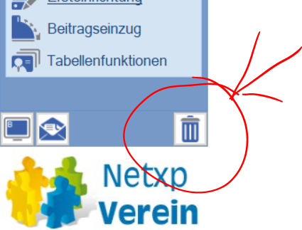 Seit gut einem Jahr gibt es in Netxp-Verein einen Papierkorb, aus dem Ihr versehentlich gelöschte Mitglieder, Buchungen, Kontoumsätze, Ansichten, Übungsleiter, Gruppen oder Onlinebankingaufträge wiederherstellen könnt. Ihr findet den Papierkorb, unten links, oberhalb des Netxp-Verein Logos.