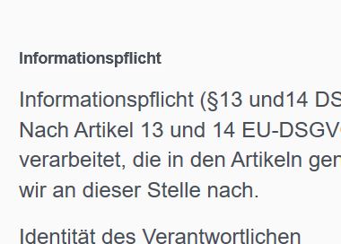 Mit Einführung der DSGVO wurde dieser Schritt vereinheitlicht. Jeder, der personenbezogene Daten erhebt und speichert, muss diese Informationspflichten nach §13 erfüllen. Er muss auf gleichem Medienwege wie bei der Erhebung der Daten folgendes mitteilen: