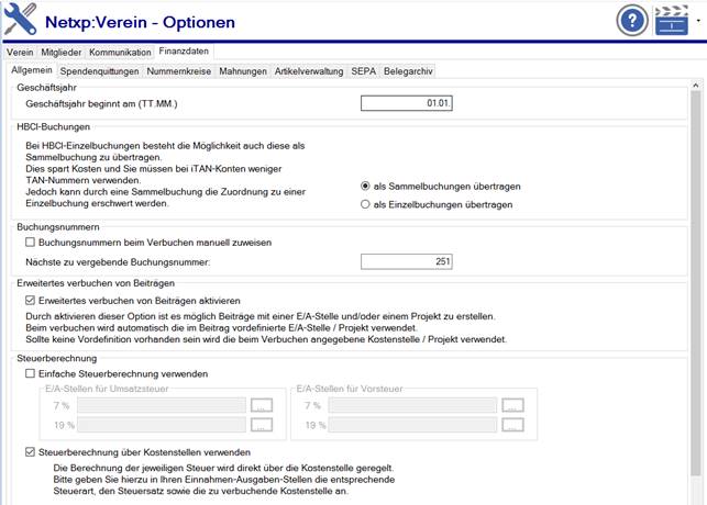 erhalten Sie wichtige Einstellmöglichkeiten betreffend die Finanzdaten und der