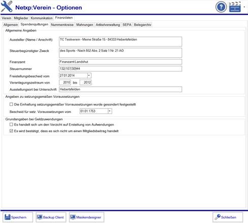 Grundangaben bei Geldzuwendungen |
