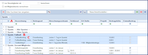 B – Sie wollen alle Beiträge einer Sparte einziehen? Dann setzen Sie hier einen Haken.